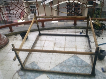 Bahan rangka kolam bisa bermacam macam sesuai kebutuhan dan budget masing masing bisa terbuat dari paralon kawat besi ataupun dari bambu.