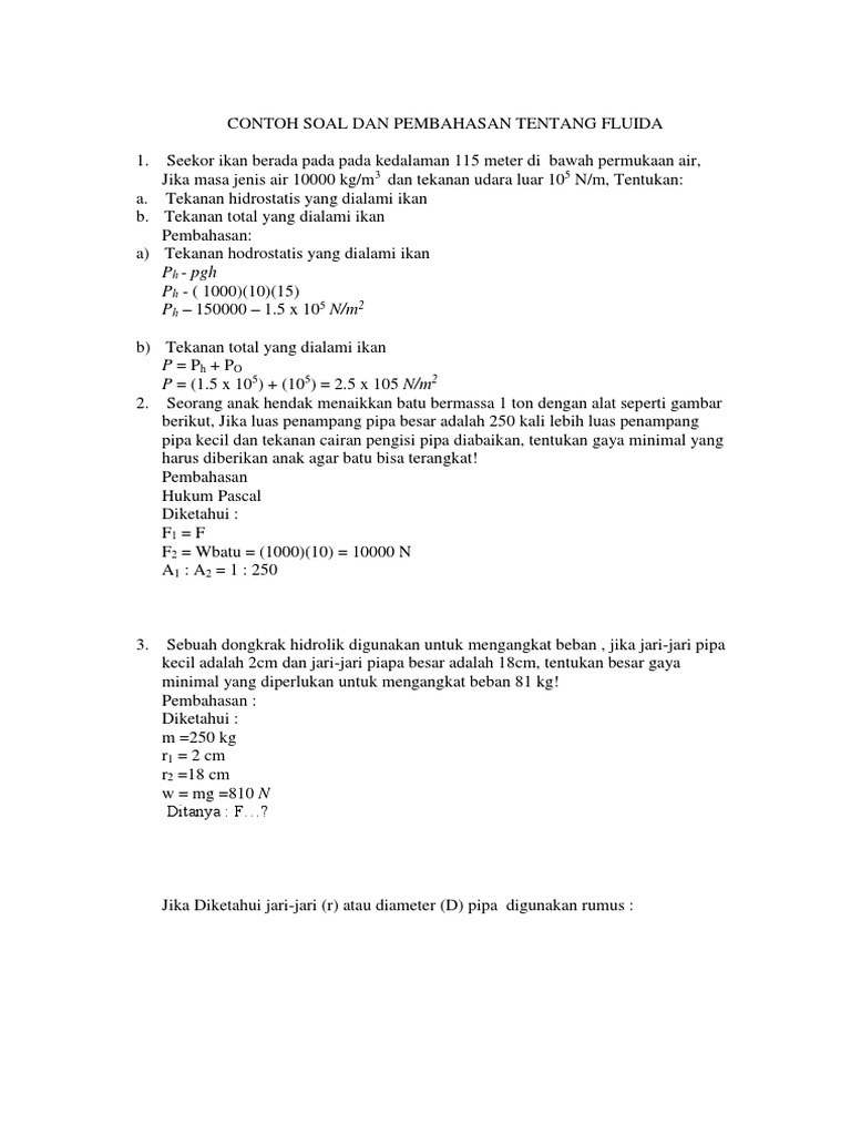 Contoh Soal Dan Pembahasan Tentang Fluida