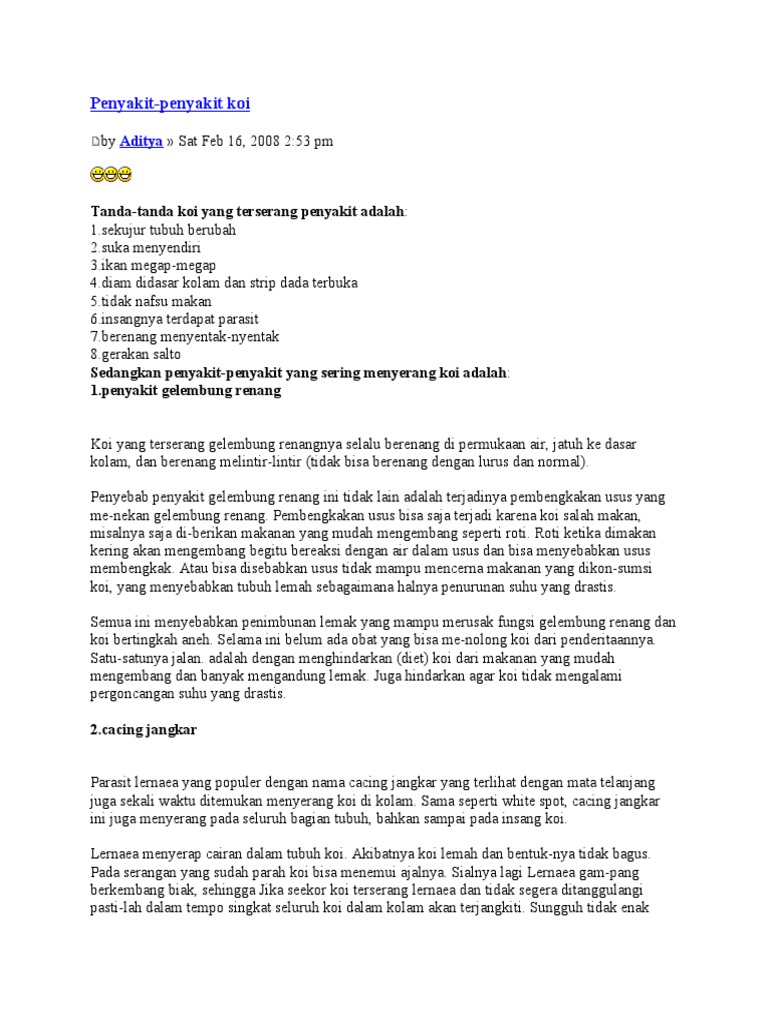 Penyakit Penyakit Pada Ikan Koi Raja Petshop